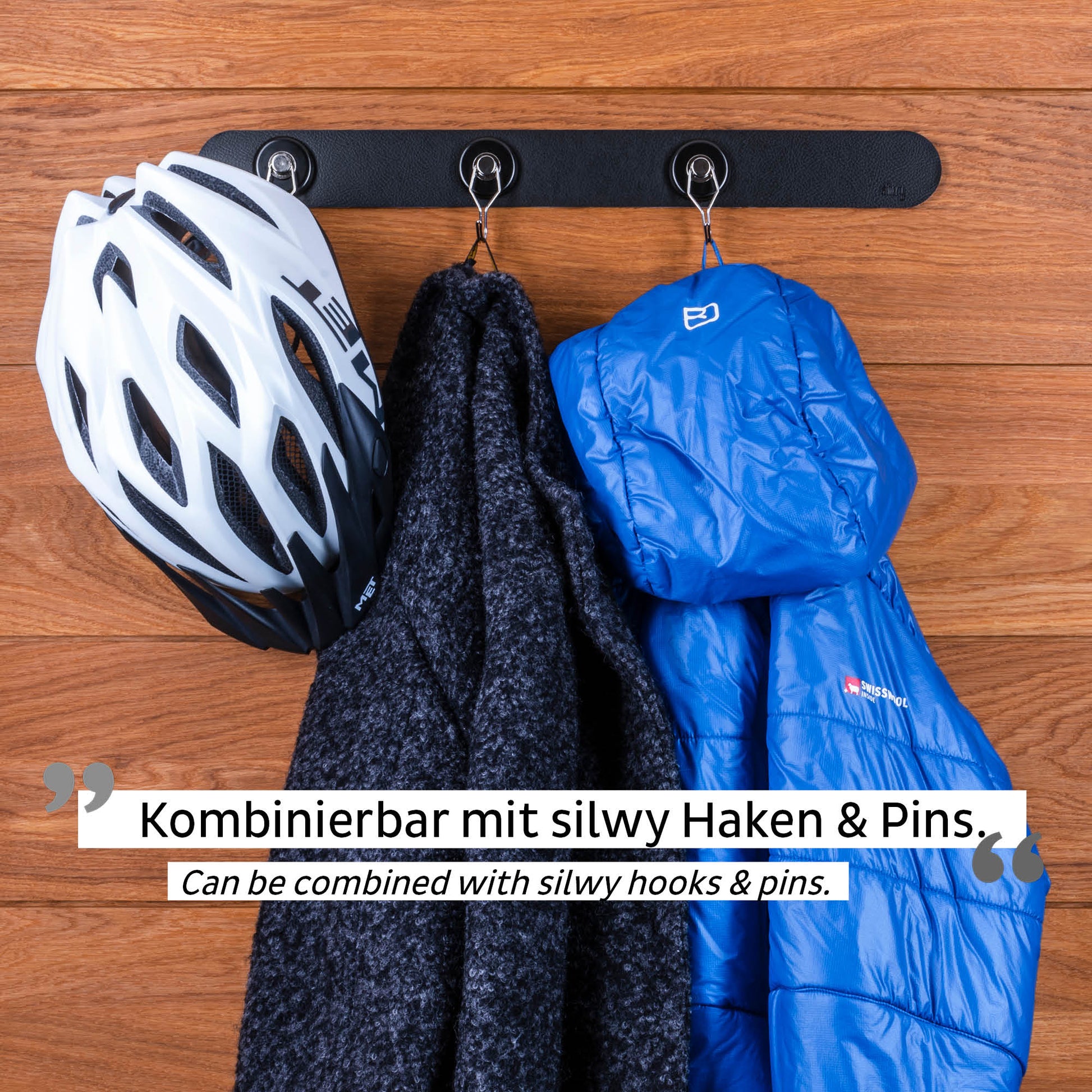 Verstauen Sie Ihre silwy-Kunststoff- und Kristallgläser sicher und platzsparend mit dem cleveren Verstausystem. Ob kopfüber, vertikal oder horizontal, so werden die Gläser samt Leiste in schicker schwarzer Lederoptik zum Blickfang. Dank ihrem speziellen Metallkern hat die Leiste eine besonders hohe Haftkraft. Kombinierbar mit den silwy-Magnethaken und -Pins, hält sie bis zu 10kg.